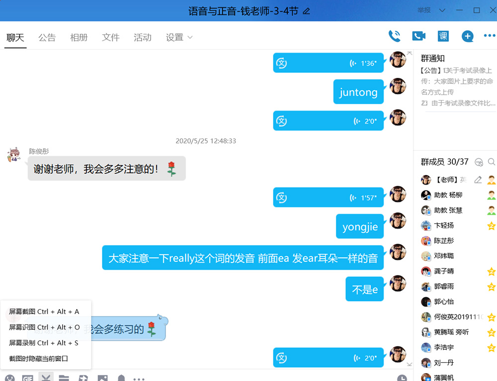 英文系教师就如何评价学生、教学改进计划、在线教学工具等多个问题进行讨论并提出想法和建议。在教学工具和方式方面,老师们充分利用多种教学资源,采用QQ群、腾讯会议、畅课平台、Zoom等多种平台来满足教学需求。同时为了保证学生学习效果,还发掘了EV录屏、迅捷录屏等录屏软件对课程进行录像,让学生能够在课后自行回顾学习,这也得到了学生的广泛好评。线上教学方式也更加多种多样,针对不同类型的课程,采用录播、直播+录屏、课堂讨论(辩论)、小组展示、QQ群定时答疑、以练习推动教学等方式开展教学,而学生的课堂参与也包括实时拍照分享课堂练习、录音练习口语、作业匿名互评等方式。