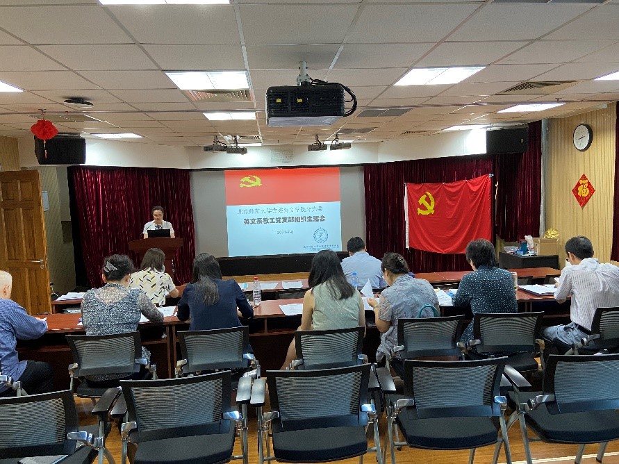 2021年7月8日,英文系教工党支部在后主楼914召开了组织生活会。本次活动的主题为:学党史、悟思想、办实事、开新局。英文系教工党支部全体党员教师以及学校党史学习教育督导谢天老师、英文系教工党支部发展对象和积极分子共同参加了本次活动。