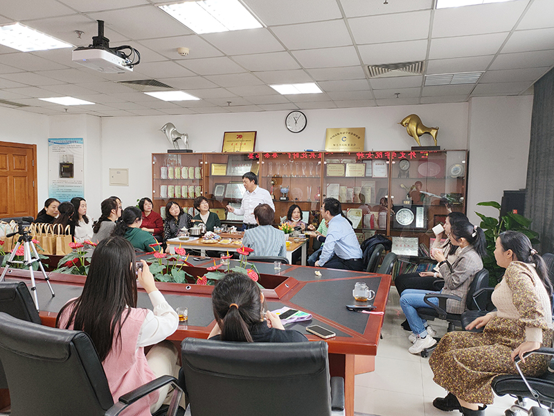 活动中,叶经理向老师们介绍了如何选茶、泡茶、喝茶,普及了不同茶叶的制作方法和风味,并在现场为老师们泡制了多种茶叶。老师们品尝了茉莉花茶、老树红茶、武夷肉桂茶、龙井茶等不同品种的茶叶,搭配上可口的曲奇饼干和其他糕点,春茶品鉴活动在愉快、轻松的氛围中圆满结束。