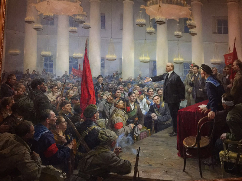 11月29日,俄文支部参观了国家博物馆举办的十月革命100周年纪念展。支部除了二人因有紧急公务未到场外,全部到齐,还吸引了党外人士一人参加。作为俄语人,参观这样的展览每个人都感慨万分,尤其是今天——距离苏联解体也已经有26年之久了。有关100年前那场轰动世界也改变了世界大格局的伟大社会主义革命的记忆,被呈现在眼前的一张张图片、绘画原作和伟人生前遗留下来的实物,一一唤醒。我们保存在记忆里的储备,被一一激发出来。实话说,这里陈列的每张图片和绘画,我们早已从影视作品里、各种展览会、历史教科书里见到过,有过鲜活的印象,但此时看到原作,依然令人感到心情激动而又复杂。我们当年在参政院广场的徘徊踟蹰,在冬宫参观逮捕临时政府的那个会议厅,我们在列宁生日那天参观列宁在拉兹利夫湖畔的故居博物馆(列宁写作《国家与革命》的地方)……等等场景,油然浮上脑际。也是凑巧,昨天刚刚作为点评人参加了黄会林教授与莫斯科大学柳德米拉教授的对话。而柳德米拉的讲话,对十月革命极力加以赞扬和肯定。她指出:按照马克思在《1844年经济学-哲学手稿》中对于“异化劳动”的分析,在资本主义私有制条件下,工人劳动生产的产品越多,其作为劳动力的价格就越低:劳动成为工人的对立物。十月革命后新生的苏维埃政权之所以一再强调要人民当家做主,就是要克服异化劳动,让人民成为历史和文化的创造者和主体。在今天的俄罗斯,怀旧即对苏联的怀旧和思念,成为影响非常广泛的思潮之一。有人就说:一件东西当你拥有它时,往往不懂得珍惜,只有失去它时,才倍感它的可贵。参观这样一个展览,让我们有了一个把历史与现实、理论与实践结合起来的契机,让我们浮想联翩,想到了过去,现在,还有未来。也许,在我们不忘初心,砥砺前行的道路上,我们还需要不时地重温十月革命成果和马克思的思想,以激励我们奋勇前进。
