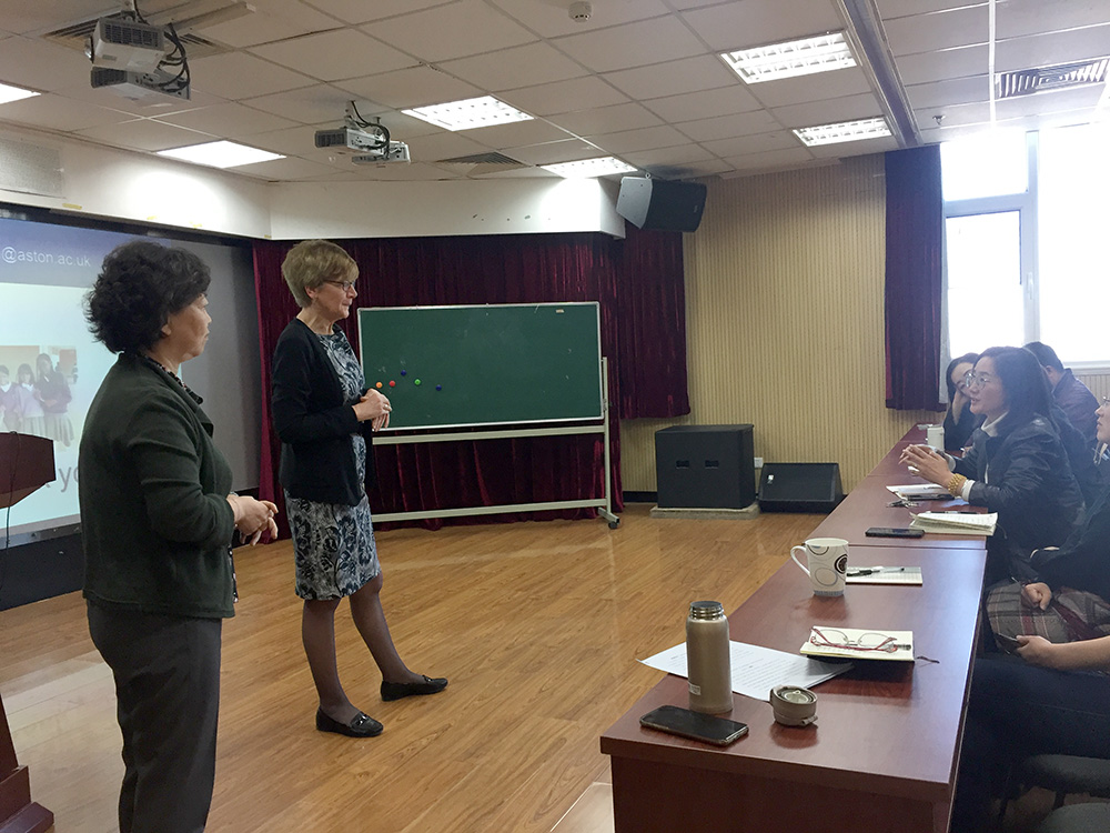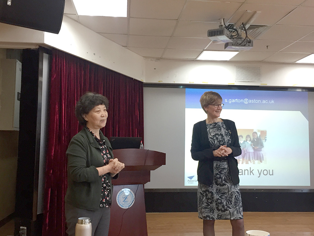 讲座前,王蔷教授以幽默风趣的语言介绍了Sue Garton博士。Sue是英国阿斯顿大学应用语言学(TESOL)的高级讲师,语言与社会科学学院对外关系副院长,以及语言研究中心主任。她有多年与国际英语学生及教师工作的经验,曾在多国担任TESOL相关的客座讲师,是语言教师教育、少儿教学、教育政策与课堂互动方面的专家。