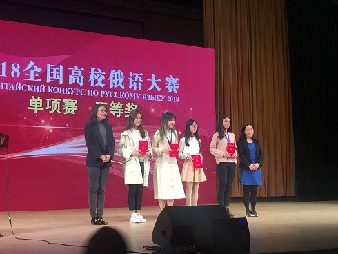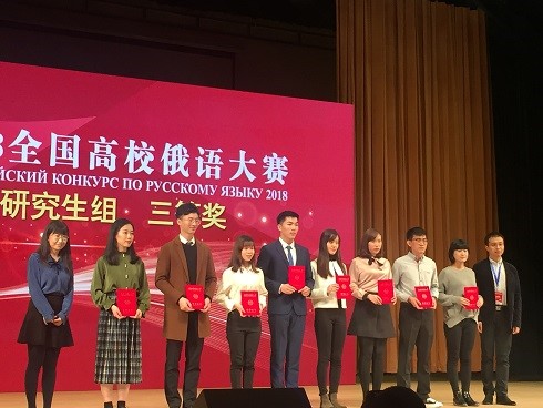 2018年10月26日至28日,由教育部国际合作与交流司主办、上海外国语大学承办的“2018年全国高校俄语大赛”在上海外国语大学虹口校区顺利举行。来自全国147所高校的348名选手参加了本次大赛。大赛分设低年级组、高年级组和研究生组三个组别,经过两天的激烈角逐,北京师范大学代表队发挥出色,喜获佳绩:2017级本科生李心宇荣获演讲单项赛低年级组三等奖;2015级本科生涂冰玥荣获高年级组二等奖;2017级研究生孙嘉轶荣获研究生组三等奖。