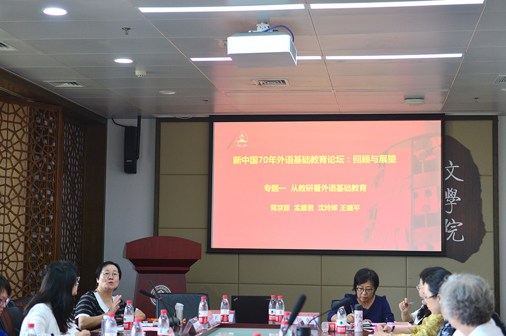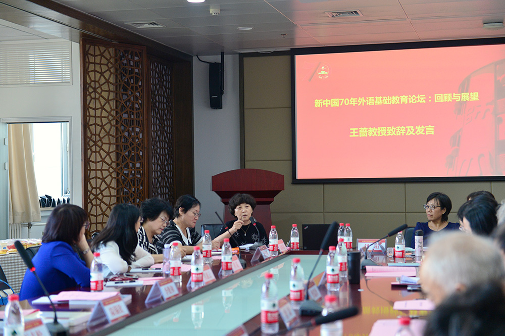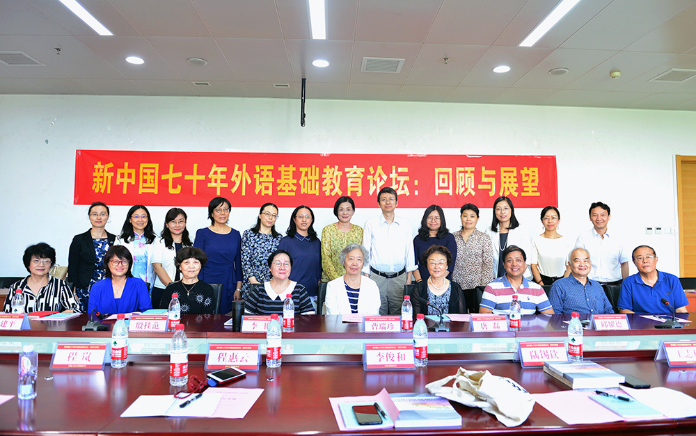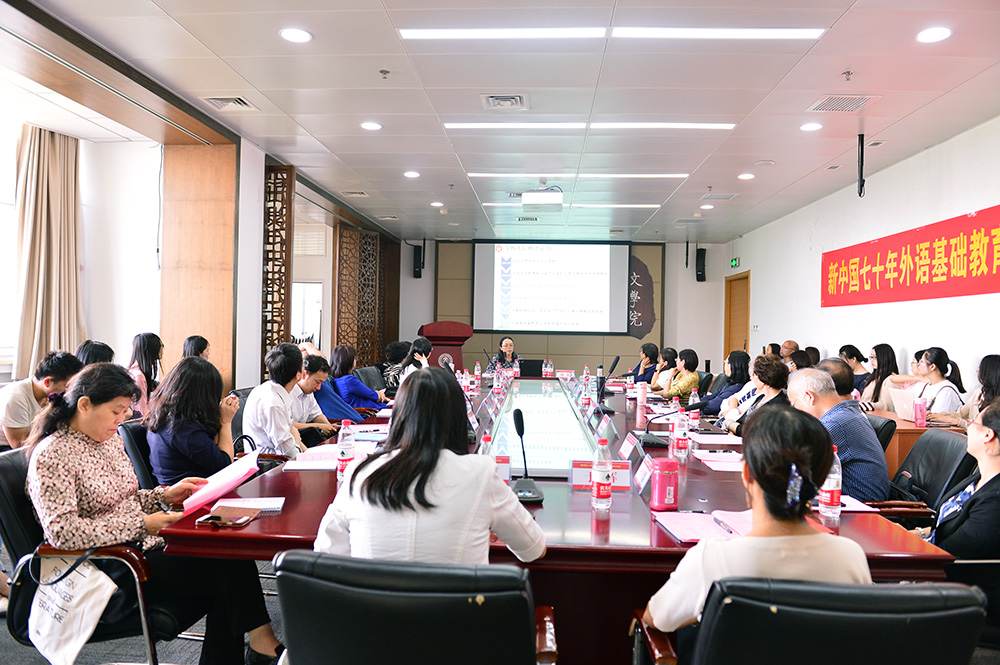 2019年9月21日,由外围买球app十大平台官网主办的新中国70年外语基础教育论坛:回顾与展望在京举行。为庆祝中华人民共和国成立70周年,外围买球app十大平台官网特邀请外语基础教育领域专家学者,共同回顾新中国外语基础教育发展70年的光辉历程,总结外语基础教育的成功经验,不忘初心,牢记使命,共同展望中国外语基础教育的未来发展方向。本次论坛由外围买球app十大平台官网副院长陈则航教授和于晖教授主持,外围买球app十大平台官网党委书记刘娟教授及来自外围买球app十大平台官网、北京外国语大学、首都师范大学、北京师范大学出版、人民教育出版社、北京市教育科学研究院基础教育教学研究中心、北京市第四中学、北京市月坛中学、中国人民大学附属中学、清华大学附属中学、北京市第十二中学的三十余位专家学者出席论坛。本次论坛是外围买球app十大平台官网党委“不忘初心、牢记使命”主题教育系列活动之一。