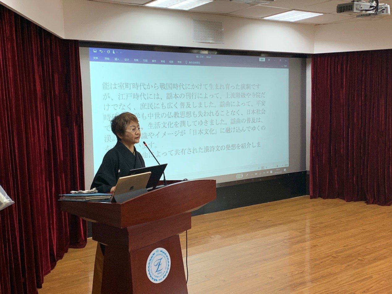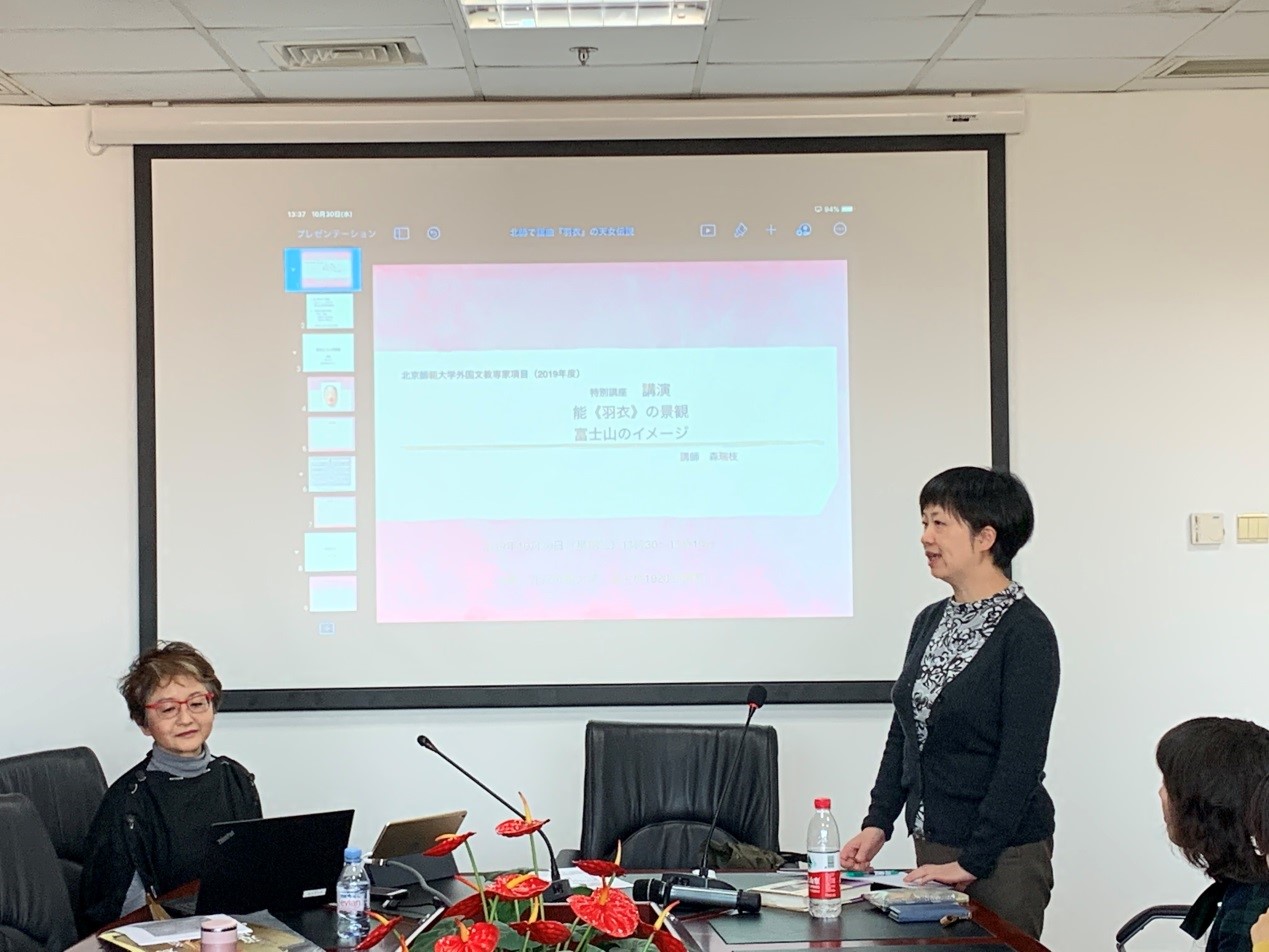 2019年10月末至11月初,北京师范大学外围买球app十大平台官网东亚文化比较研究中心连续举办了两场别开生面的“能乐”专题讲座。“能乐”是最具代表性的日本传统戏剧形式,蕴涵着丰富的日本中世文学文化要素。这次活动为外国文教专家项目,邀请到日本能乐协会会员森瑞枝先生。森先生不仅是金春流主角扮演者,同时也是日本中世文化专家。