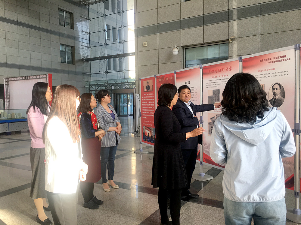 学习会后,理论学习中心组成员和党政联席会成员一起前往主楼四季厅参观了《五四运动与北京师范大学——纪念五四运动100周年专题展览》,深入了解了一百年前北师大爱国学生为民族独立和国家富强,勇敢走在五四运动前列的光辉事迹。