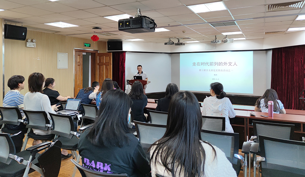 2021-06-18公外支部携手教工联合支部,于6月4日上午10:15在后主楼914会议厅举办了题为《走在时代前列的外文人》的红色院史讲座...