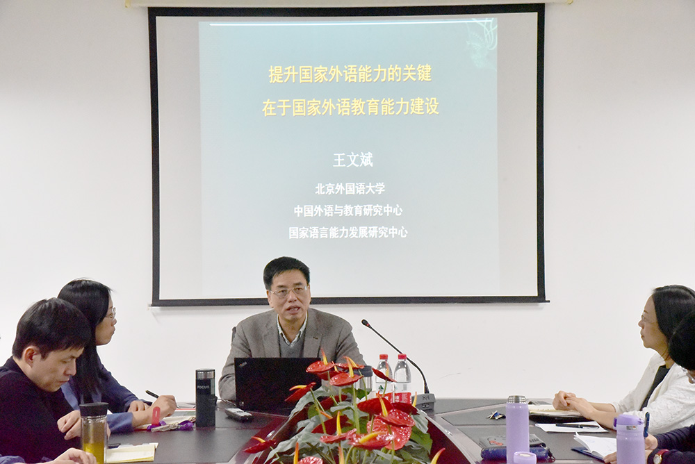 2018年11月22日,北京外国语大学王文斌教授应于晖教授邀请,于后主楼1020室举行了“治学·修身”系列第七场、总第十五场讲座,主题为“提升国家外语能力的关键...